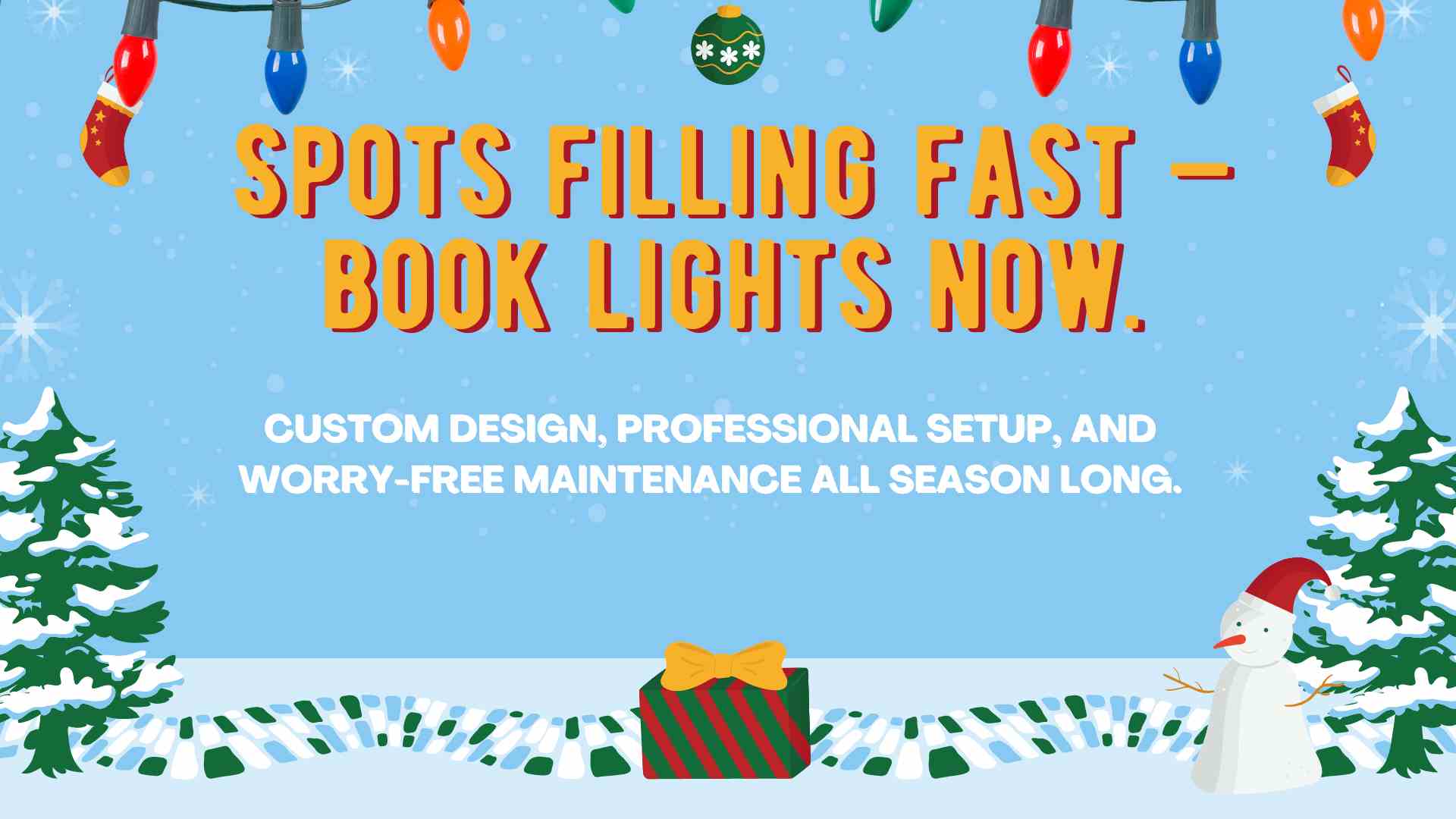 Lights on roof, bushes, walkpath, trees, spritzers, the works!